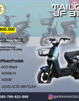 Rp 3.600.000SEPEDA LISTRIK TAILG GR51 Spesifikasi : Motor Power : 800 Watt Baterai : Lead Acid 48V20Ah Jarak Tempuh : 60Km Kecepatan : 45Km/Jam Tersedia Warna : Coklat, Pink, Mint, Hijau (Sebelum Checkout Kontak Admin Untuk Ketersediaan Warna)