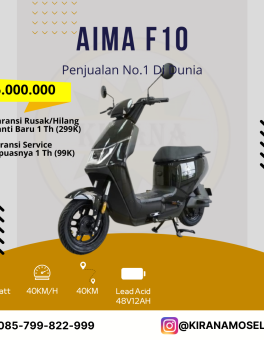 Rp 5.700.000SEPEDA LISTRIK AIMA F10 Spesifikasi : Motor Power : 500 Watt Baterai : Lead Acid 48V12Ah Jarak Tempuh : 40Km Kecepatan : 40Km/Jam Tersedia Warna : Merah, Biru, Hitam, Abu, Hijau (Sebelum Checkout Kontak Admin Untuk Ketersediaan Warna)