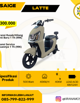 Rp 3.100.000SEPEDA LISTRIK SAIGE LATTE Spesifikasi : Motor Power : 500 Watt Baterai : Lead Acid 48V12Ah Jarak Tempuh : 40Km Kecepatan : 40Km/Jam Tersedia Warna : Ungu, Cream, Hitam, Merah (Sebelum Checkout Kontak Admin Untuk Ketersediaan Warna)