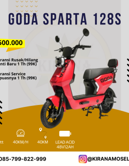 GODA E-BIKE SPARTA 128SSEPEDA LISTRIK GODA SPARTA 128S Spesifikasi : Motor Power : 600 Watt Baterai : Lead Acid 48V12Ah Jarak Tempuh : 40Km Kecepatan : 40Km/Jam Tersedia Warna : Hijau, Merah, Abu, Putih, Biru (Sebelum Checkout Kontak Admin Untuk Ketersediaan Warna)