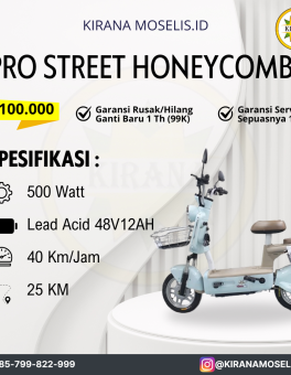 Rp 10.100.000TersediaPRO STREET E-BIKE HONEYCOMBSEPEDA LISTRIK PRO STREET HONEYCOMB Spesifikasi : Motor Power : 500 Watt Baterai : Lead Acid 48V12Ah Jarak Tempuh : 25Km Kecepatan : 40Km/Jam Tersedia Warna : Violet, Pink, Cream, Biru (Sebelum Checkout Kontak Admin Untuk Ketersediaan Warna)