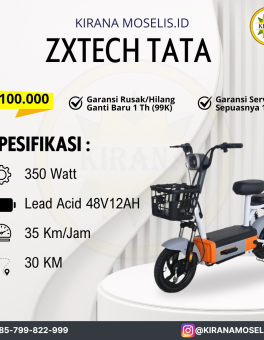 Rp 4.300.000SEPEDA LISTRIK ZXT TATA Spesifikasi : Motor Power : 350 Watt Baterai : Lead Acid 48V12Ah Jarak Tempuh : 30Km Kecepatan : 35Km/Jam Tersedia Warna : Hitam, Oren, Pink, Biru (Kontak Admin Untuk Ketersediaan Warna)