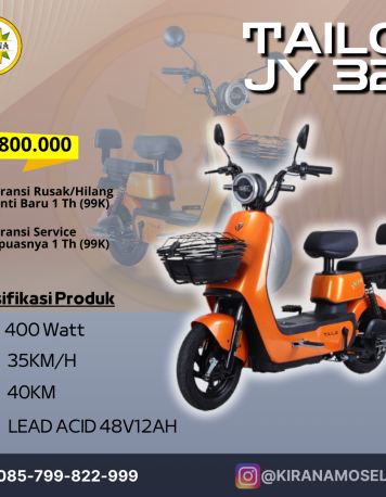 Rp 11.300.000SEPEDA LISTRIK Spesifikasi : Motor Power : 800 Watt Baterai : Lead Acid 48V12Ah Jarak Tempuh : 49Km Kecepatan : 50Km/Jam Tersedia Warna : Biru, Kuning, Hijau, Army (Sebelum Checkout Kontak Admin Untuk Ketersediaan Warna)