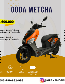 Rp 14.600.000SEPEDA LISTRIK GODA LUNA Spesifikasi : Motor Power : 1500 Watt Baterai : Lead Acid 72V60Ah Jarak Tempuh : 60Km Kecepatan : 70Km/Jam Tersedia Warna : Merah, Putih, Hitam (Sebelum Checkout Kontak Admin Untuk Ketersediaan Warna)