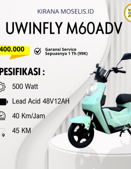 SEPEDA LISTRIK UWINFLY M60 ADV Spesifikasi : Motor Power : 500 Watt Baterai : Lead Acid 48V12Ah Jarak Tempuh : 40Km Kecepatan : 45 Km/Jam Tersedia Warna :Hitam,Putih,Cream,Biru, Merah,Hijau (Sebelum Checkout Kontak Admin Untuk Ketersediaan Warna)