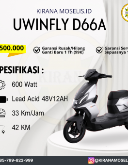 Rp 4.400.000SEPEDA LISTRIK UWINFLY D66B Spesifikasi : Motor Power : 600 Watt Baterai : Lead Acid 48V12Ah Jarak Tempuh : 40Km Kecepatan : 35Km/Jam Tersedia Warna : Merah,Silver,Cream, Hijau, (Sebelum Checkout Kontak Admin Untuk Ketersediaan Warna)