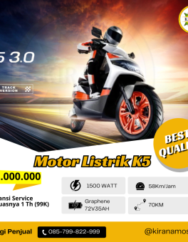 Rp 6.100.000MOTOR LISTRIK SUNRA Q5 Spesifikasi : Motor Power : 1500 Watt Baterai : Graphene 72V21Ah Jarak Tempuh : 70Km Kecepatan : 55Km/Jam Harga Off The Road Tersedia Warna : Merah
