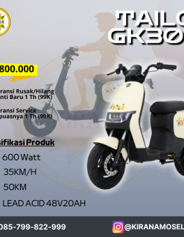 Rp 8.700.000SEPEDA LISTRIK TAILG GK30S Spesifikasi : Motor Power : 600 Watt Baterai : Lead Acid 48V20Ah Jarak Tempuh : 50Km Kecepatan : 35Km/Jam Tersedia Warna : Abu, Putih, Kuning (Sebelum Checkout Kontak Admin Untuk Ketersediaan Warna)