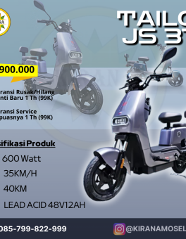 Rp 3.500.000SEPEDA LISTRIK TAILG JS31 Spesifikasi : Motor Power : 600 Watt Baterai : Lead Acid 48V12Ah Jarak Tempuh : 40Km Kecepatan : 35Km/Jam Tersedia Warna : Biru, Silver, Ungu, Hijau (Sebelum Checkout Kontak Admin Untuk Ketersediaan Warna)