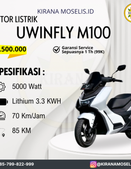 Rp 7.700.000MOTOR LISTRIK UWINFLY M100 Spesifikasi : Motor Power : 5000 Watt Baterai : Lithium 3.3 KWH Jarak Tempuh : 85Km Kecepatan : 70Km/Jam Harga Off The Road Tersedia Warna : Hitam, Ungu, Putih, Silver (Sebelum Checkout Kontak Admin Untuk Ketersediaan Warna)