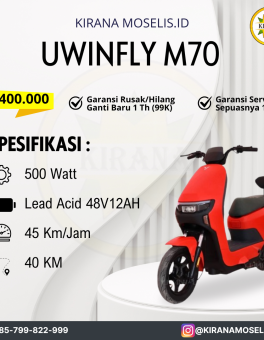 Rp 3.800.000SEPEDA LISTRIK UWINFLY M70 Spesifikasi : Motor Power : 500 Watt Baterai : Lead Acid 48V12Ah Jarak Tempuh : 40Km Kecepatan : 45Km/Jam Tersedia Warna : Biru, Merah,Cream (Sebelum Checkout Kontak Admin Untuk Ketersediaan Warna)